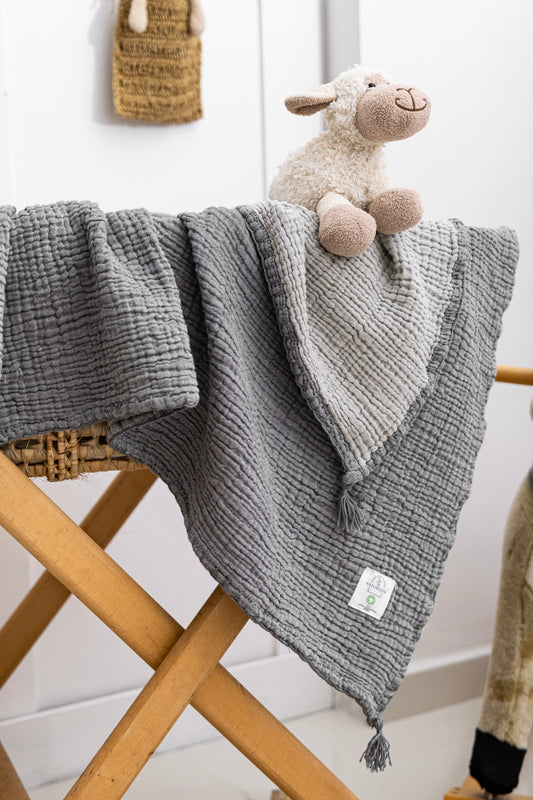 Organic Muslin Baby Blanket – GOTS Certified Cotton Swaddle, Eco Friendly Baby Gift, Lightweight Newborn Blanket, Anthracite GreyRegular price $45.99 USDRegular priceUnit price per$60.00 USDSale price $45.99 USDSale
